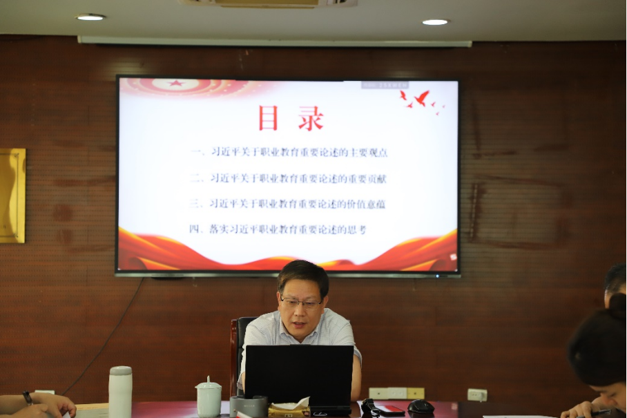 2023年6月14日下午,根据学校学习贯彻习近平新时代中国特色社会主义思想主题教育工作安排,校党委委员、副校长王建林以《习近平关于职业教育重要论述的贡献和价值》为题讲授主题教育专题党课。党课由增材制造学院党总支书记陶勇同志主持,增材制造学院党总支全体党员参加学习。
