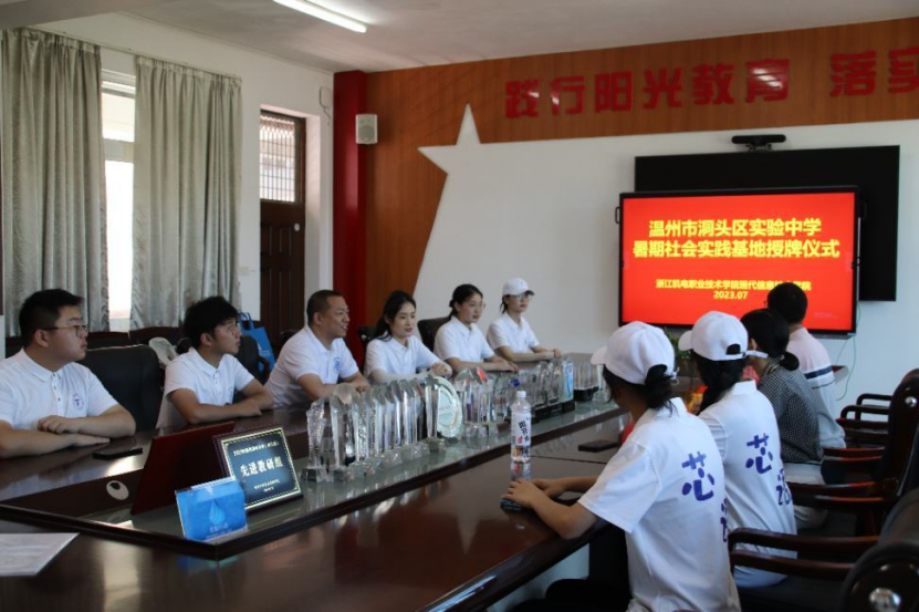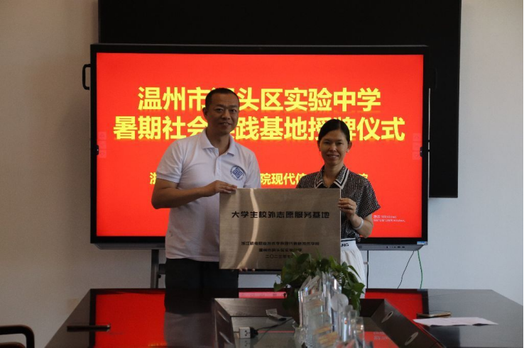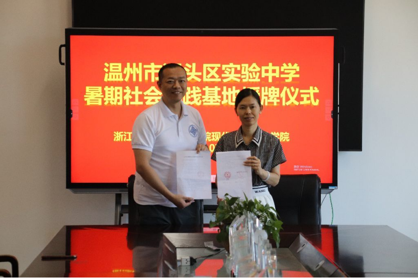 7月3日,现代信息技术学院与温州市洞头区实验中学签署“大学生校外志愿服务基地”协议并举行了授牌仪式,力促两校之间形成数字赋能长效合作。