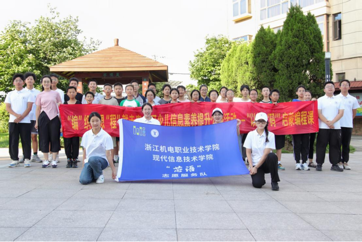 现代信息技术学院“芯语”志愿服务队牢记习近平总书记给中国农业大学科技小院的同学们回信中的嘱托“希望同学们志存高远、脚踏实地,把课堂学习和乡村实践紧密结合起来”,立志践行海霞精神,发挥专业优势赋能海岛振兴, 面向温州市洞头区适龄少年开展“以梦为‘码’‘程’就未来”公益课堂,推动海岛少年与数智化时代同频共振。