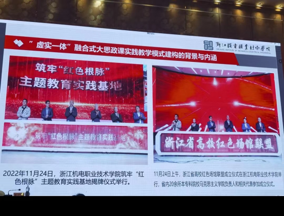 查教授指出,浙江机电职业技术学院马克思主义学院近年来坚持以“大思政”课理念和“八个相统一”为根本遵循,依托浙江“红色根脉”资源优势和学校“双高”院校的数字化智慧校园优势,强力推进信息化赋能思政课创新,着力建构“虚实一体”大思政课实践教学新模式,并在学校大力支持下创建了筑牢“红色根脉”主题教育实践基地,积极探索基于大历史观、大数据观、大实践观视域下的“红色铸魂 数字赋能‘虚实一体’大思政课”实践育人新模式,不断深化虚拟与现实、历史与现实、理论与实践融合育人新成效。