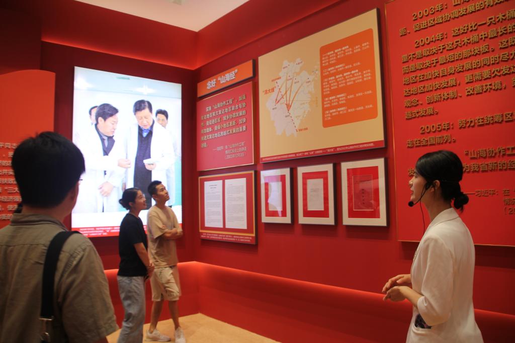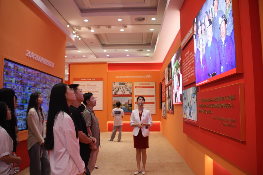 作为习近平总书记长期工作过的地方,浙江大地上的每一寸土地都留下了习近平总书记的足迹,每一步跨越都离不开“八八战略”的指引。展览中逼真的实物模型、生动的调研故事、可视化的图表脉络、数百幅精选图片以及艺术、科技作品,互动式装置和沉浸式体验空间,展示了浙江在产业结构调整、科技创新、绿色发展、开放合作等方面取得的显著成果,让辅导员和同学们用心回味、真心感悟总书记的淳淳教诲和殷殷嘱托,切身走进“八八战略”,体会其对浙江经济转型升级的重要作用,感受其对浙江教育、医疗、住房、社会保障等方面的改善和发展,深刻体会伟大思想同伟大实践互相激荡形成的凝聚力和创造力。