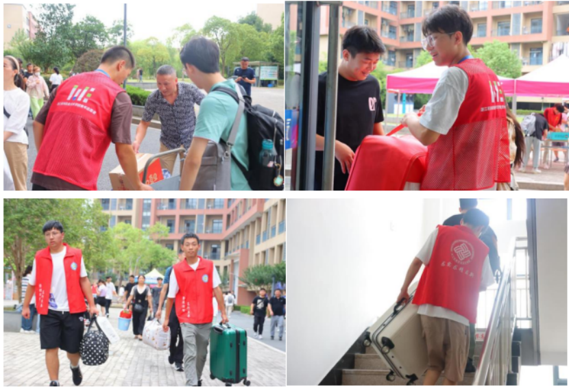 报到当天,学院党总支书记陈罡、副院长王耀军、副书记罗鹏举、学院辅导员及班主任在学院迎新场地,与迎新志愿者一道,欢迎新生的到来。一抹抹鲜艳的“志愿红”穿梭在海宁校区的各个角落,各板块工作人员按照流程为新生们办理入学手续,提供咨询,解答新生的各类问题,尽其所能为同学们提供帮助。公寓志愿者则早早地等在寝室楼下,为新生搬运行李、提供路线指引,帮助他们顺利入住寝室。在各工作人员及志愿者们的合作下,一批又一批新生顺利完成报到,学院细致周到的服务使同学们真切地感受到来自学院的温暖和来自老师、学长们的关怀。