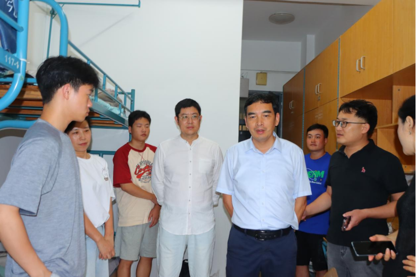 学校党委书记汤兆武亲临报到现场指导工作,向忙碌在迎新一线的师生志愿者和工作人员表示亲切慰问,对2023级新学子表示欢迎,希望他们尽快融入机电大家庭。