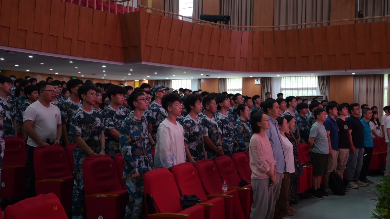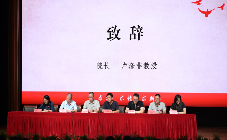 在庄严的奏唱国歌仪式后,院长卢涤非首先向2023级新生表示祝贺,他指出“求实 求精 求新”是机电学院的校训,也是信息学院真实行动写照。他勉励同学们,在校学习生活中,一要除偏见、常省思,以当下为起点,看到机遇与挑战并存;二要善学习、出真知,以实事求是的态度学习进步;三要强体魄、养品行,以善作善成的决心,怀抱梦想、脚踏实地,让大学生活在不懈奋斗中绽放绚丽色彩。
