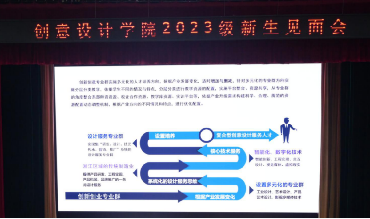 9月20日下午,创意设计学院2023级新生见面会在滨江校区5号楼报告厅举行。校党委委员、创意设计学院院长邓劲莲,创意设计学院党总支副书记符强,副院长季海祺,副书记史奕、全体科级干部与辅导员、新生班主任及2023级全体同学参加了大会。见面会由副书记史奕同志主持。