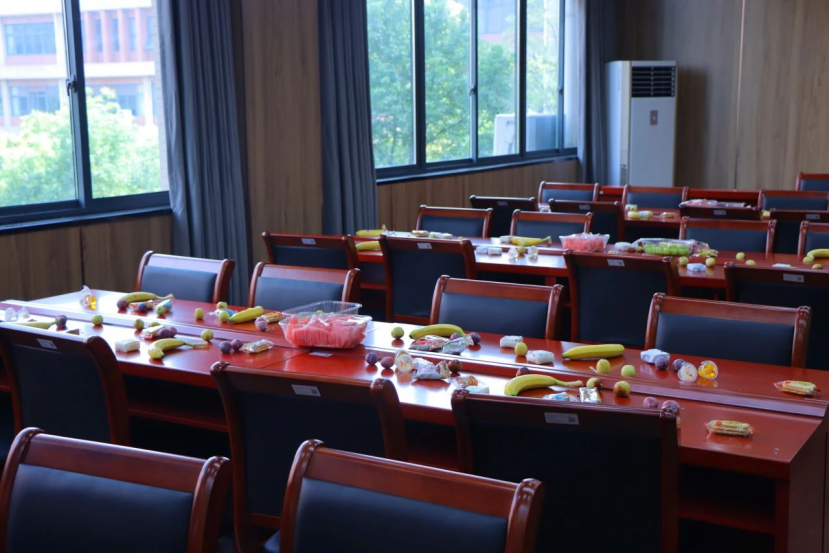 会前,桌子上摆放了学院为大家精心准备的月饼、水果和零食,带给师生浓浓的中秋情谊。