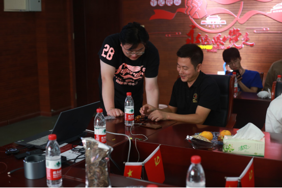 (创业学生向老师展示产品)