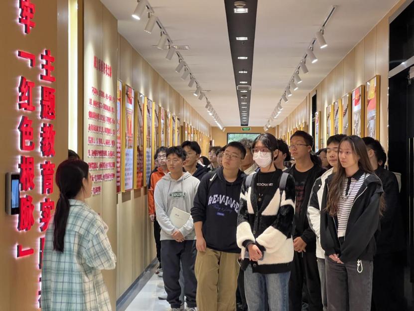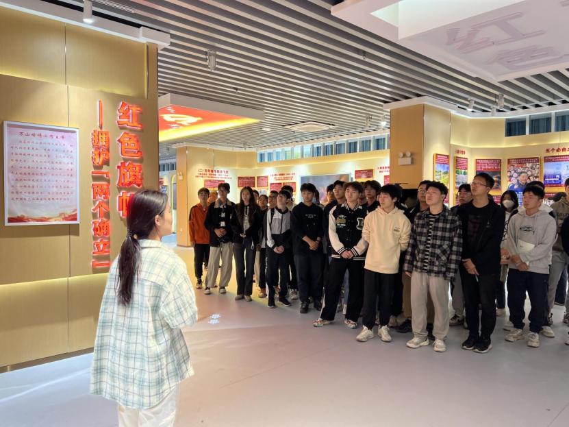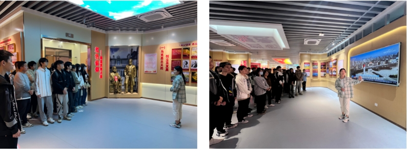 2023年11月8日,现代信息技术学院党总支、创意设计学院党总支联合马克思主义学院开展了筑牢“红色根脉”主题教育实践基地教育实践参观活动,第50期学生业余党校学员在马克思主义学院讲解员张苗苗老师的带领下逐一听取了红色信仰、红色历程、红色旗帜、红色沃土、红色基因、红色时空等六大红色板块的讲解,观看了以图文、实物展陈、VR沉浸体验、视听展播等多形式呈现的中国共产党理论创新与实践发展成果。