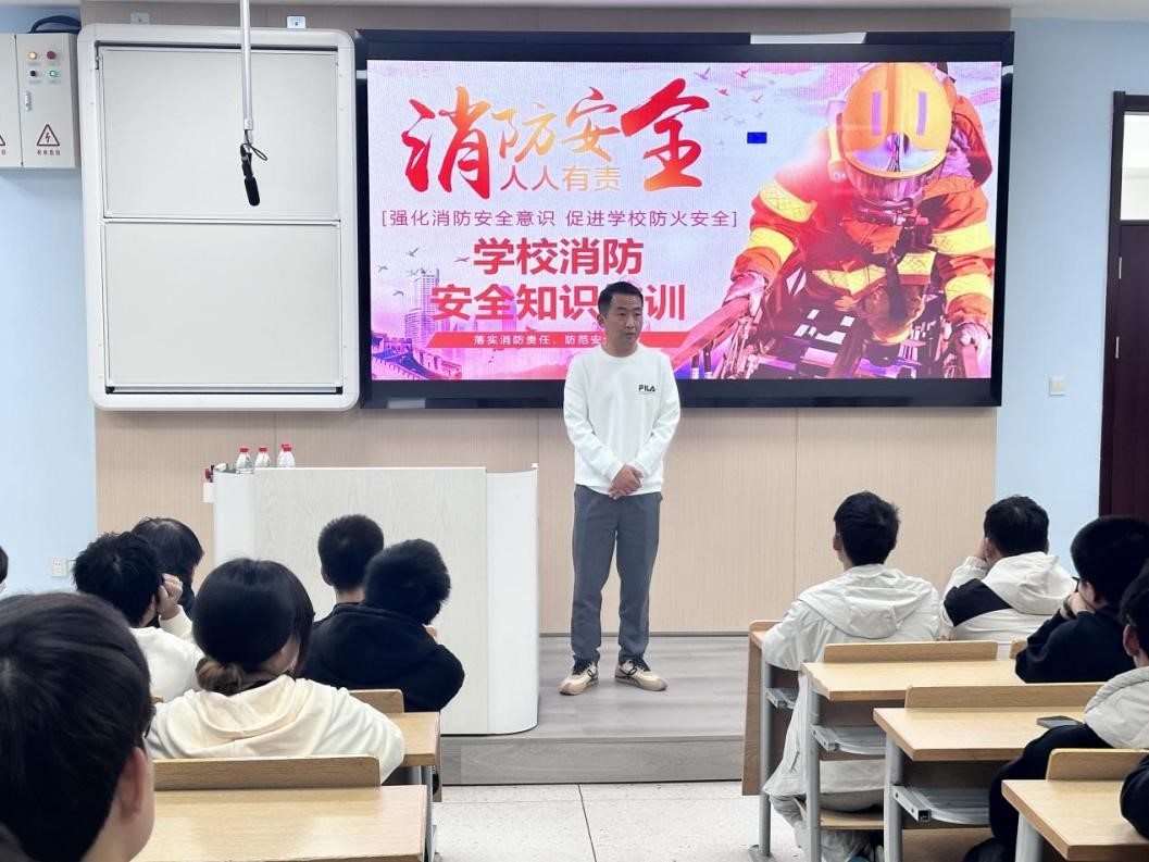 防患于未“燃”,可谓任重道远。十一月的“消防宣传月”活动已接近尾声,但消防安全教育却没有句号。为切实增强学生消防安全意识,提升应急处置能力,培养良好的生活习惯,做到消防安全“能武也能文”。11月22日下午,学校保卫处邀请长安消防救援站站长王金、助理杨思晨来校开展消防知识讲座,讲座由保卫处副处长徐振前主持。海宁校区各班安全员及校橄榄绿社团成员参加了活动。