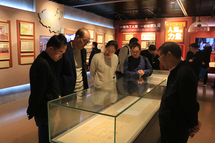 全体同志参观了“百年恰是风华正茂”主题文献展。步入展厅,时光的闸门徐徐打开。展览篇首大屏幕播放的《开国大典》彩色历史影像,真实还原了那一伟大的历史时刻。同志们都围在屏幕前驻足肃穆观看。