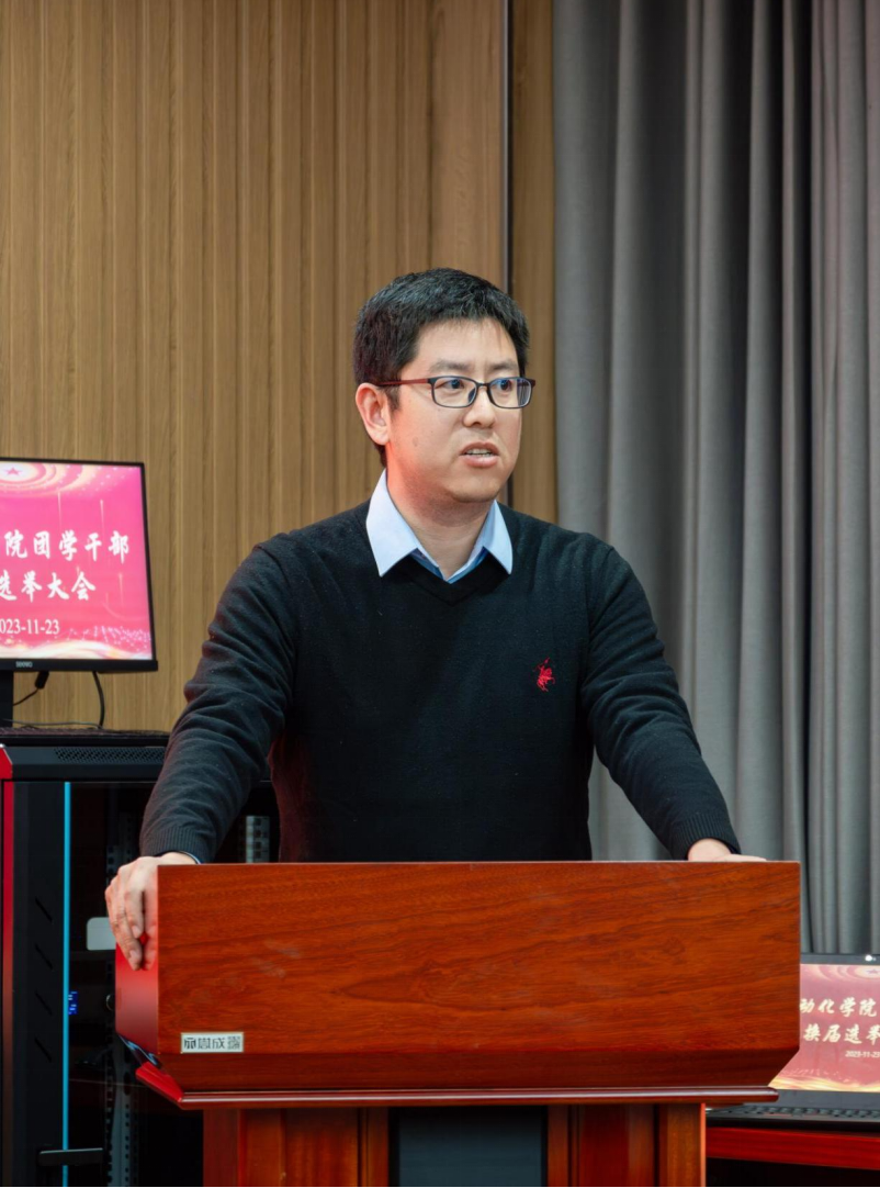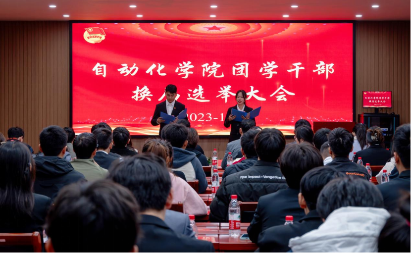 为深入贯彻习近平总书记关于青年工作的重要思想,进一步强化和规范团学组织和学生干部队伍建设,自动化学院于2023年11月23日晚在18-203召开自动化学院2023—2024学年团学干部换届大会。党总支书记陈罡、党总支副书记罗鹏举、学工办主任孟进及两校区辅导员及学生代表共百余人参加了大会。