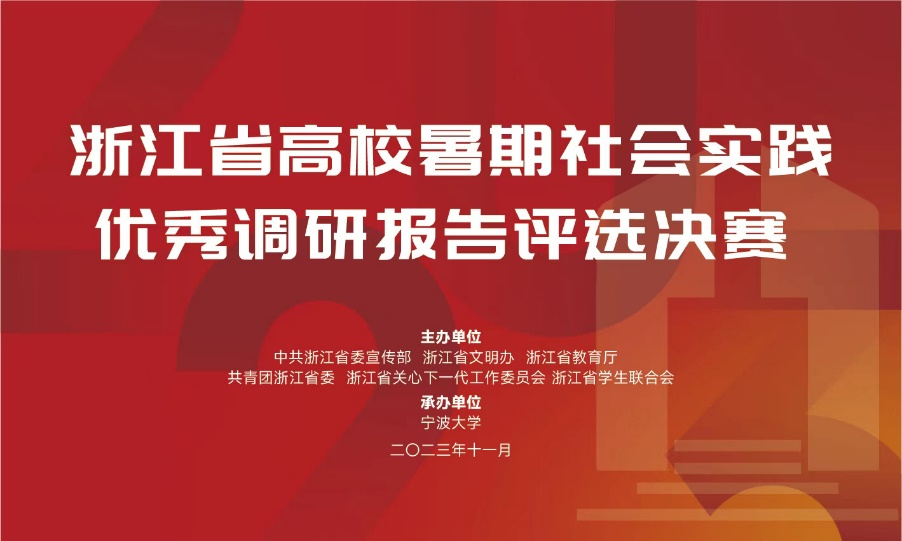 11月25日至26日,由中共浙江省委宣传部、浙江省文明办、浙江省教育厅、共青团浙江省委、浙江省关心下一代工作委员会、浙江省学生联合会共同主办的《2023年浙江省高校暑期社会实践优秀调研报告评选大赛》在宁波大学落下帷幕。