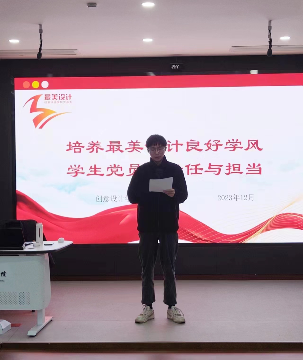 为做好升本迎评相关工作,激发学生参与迎评热情,持续加强学院学风建设,近日创意设计学院举行“书记有约”活动,学院党总支副书记符强作“培养最美设计良好学风,学生党员的责任与担当”主题报告,学院全体学生党员和入党积极分子参与此次活动。