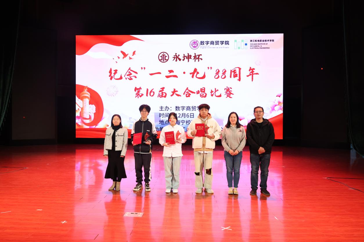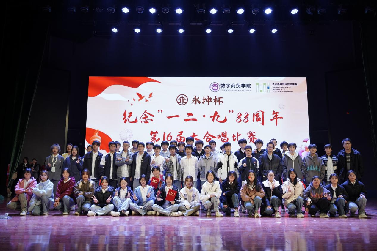 我院自2006年起,在每年的一二·九纪念日前后都会联合校友和企业一起举办大合唱比赛,从首届“景文杯”,到第二届的“中鹏杯”,第三届的“祐康杯”和之后的“富尔道杯”,一直到今年的“永坤杯”,同时还会邀请优秀校友企业家做专题报告,这一系列的活动促进了产教融合及校企协同育人的深度推进。我院纪念一二·九运动系列活动项目还曾入选2013年浙江省教育系统高校十大教书育人典型案例,省内高职院校独此项目入选!纪念一二·九系列活动已成为数字商贸学院一张闪亮的名片和学校二级学院特色文化品牌。