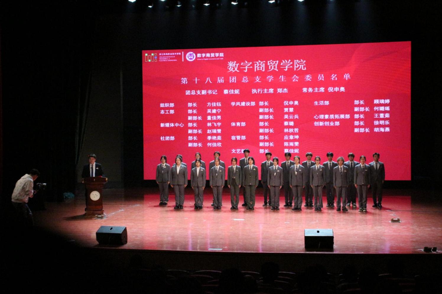 接下来是数字商贸学院团总支学生会代表换届挂牌仪式。迎新送往,换的是面孔,不变的是初心,期待新一届团总支学生会凝心聚力,共同为学院创造更加辉煌的篇章。