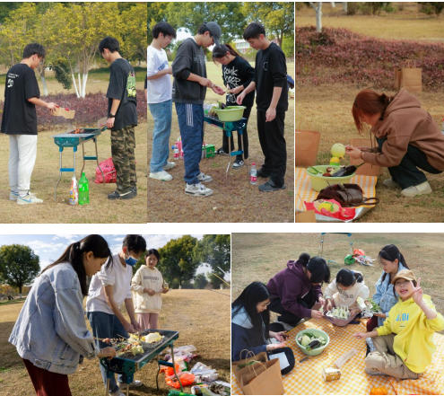 正所谓“人间烟火气,最抚凡人心”。上午游戏活动结束后,同学们陆续到达烧烤场地——上塘河公园进行烧烤活动。同学们齐心协力,分工搭配,有条不紊地将所有准备工作完成。红彤彤的炭火烤炉,放上新鲜可口的肉串,看着滋滋冒着的油花,再撒上孜然,是这个味道没错了!同学们暂时告别紧张的学习、工作旋律,体验着“自己动手丰衣足食”的乐趣,烧烤过程中大家还展示了不同的烧烤方法和技艺,一边享受自己烤制的美食,一边聊着生活和团学工作中的一些趣事,欢声笑语随着缕缕炊烟萦绕在空中,言笑晏晏,其乐融融。