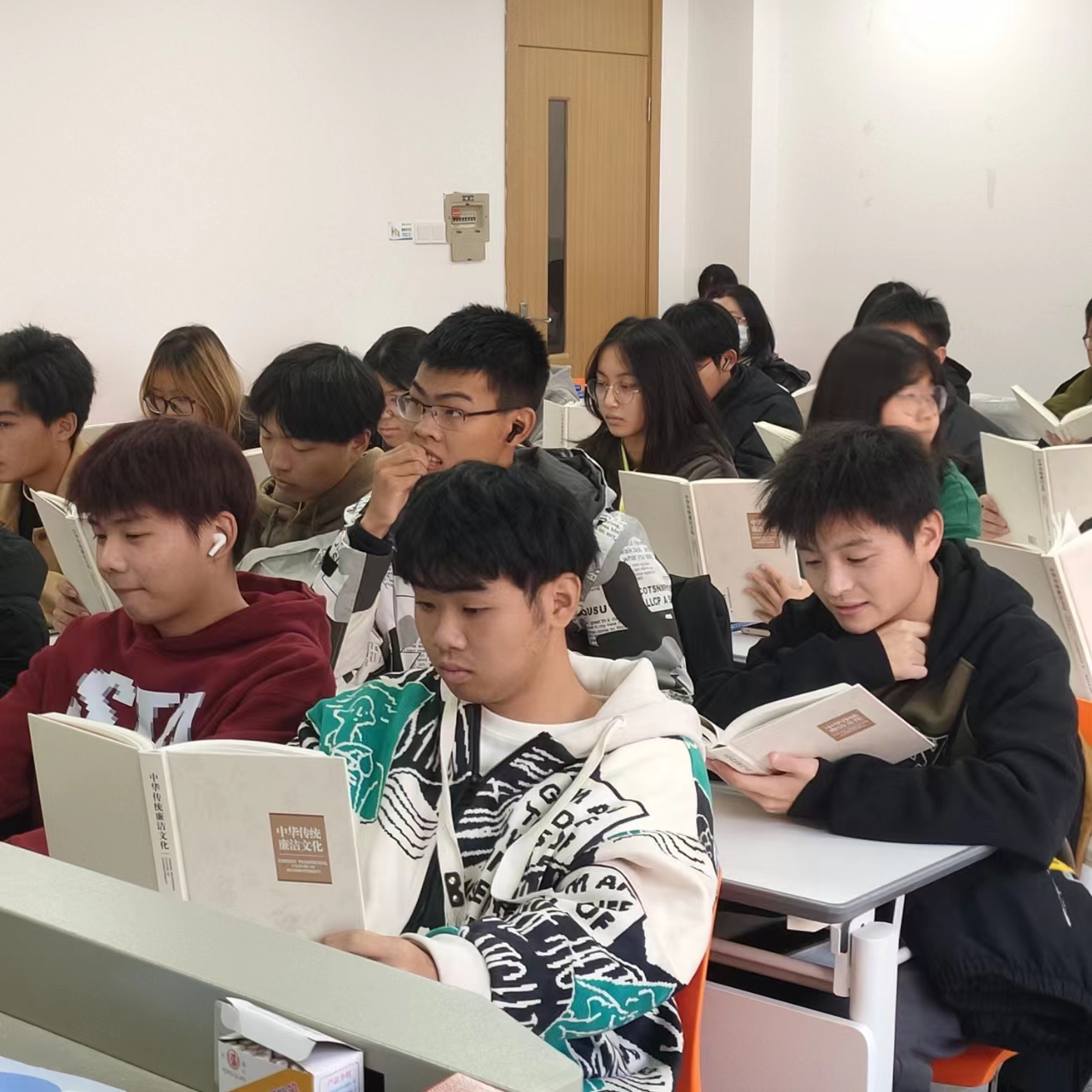 为深化同学们对廉洁内涵的理解,现代信息技术学院还开展“读书思廉•清⻛相伴”主题读书活动。各班级以多样形式组织同学们阅读廉洁文化书籍 《中华传统廉洁文化》。活动中,通过书籍资料,同学们相互讨论,深入学习中华优秀传统文化中蕴含的廉洁元素,感悟清官贤吏的嘉言懿行,汲取古圣先贤立德立功立言之道。