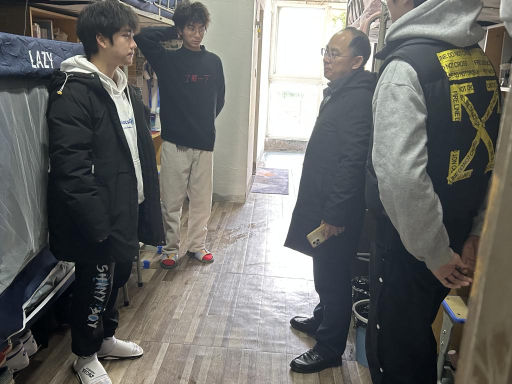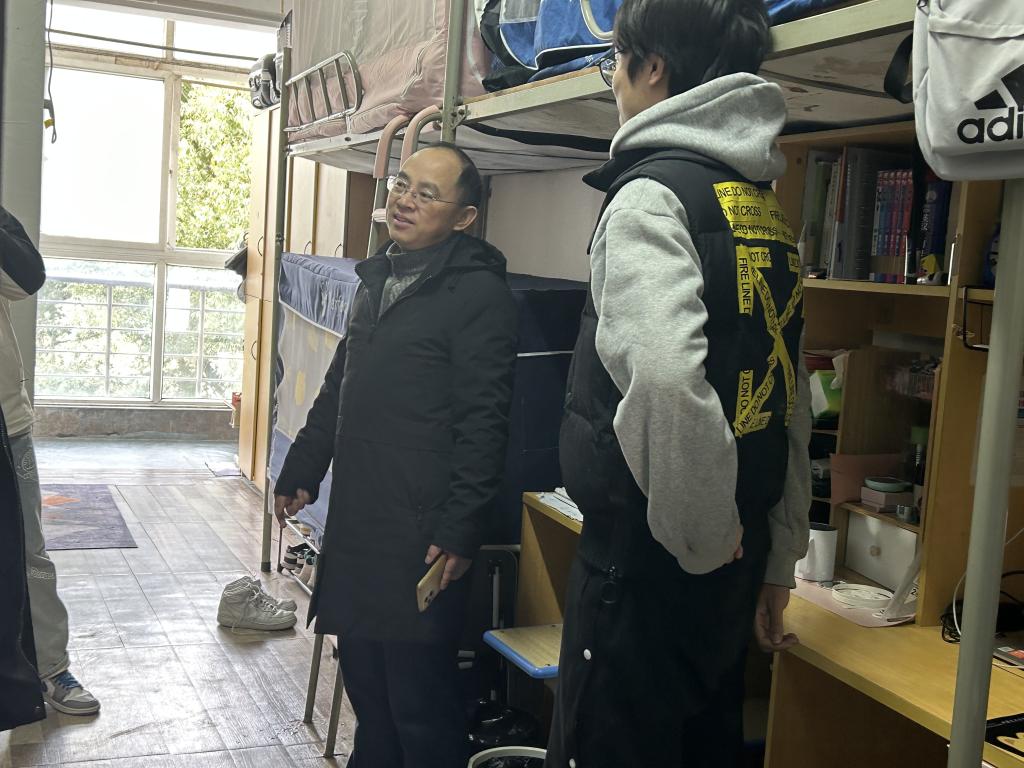 走访过程中,陶书记与学生亲切交流,详细询问了临近期末同学们的学习状态以及同学们对于课程的掌握情况;在谈到日常生活中时,陶书记要求同学们要创造一个美好的寝室卫生文化环境,提升宿风学风面貌,以良好的姿态迎接学校升本的到来,同时提醒同学们最近天气骤降,需注意多穿衣服,多走出去运动,保证良好的身体素质,来应对即将来临的期末考试。他对学生强调,无论生活中还是学习上遇到任何困难,都可以及时寻求分院领导、辅导员和班主任的帮助。