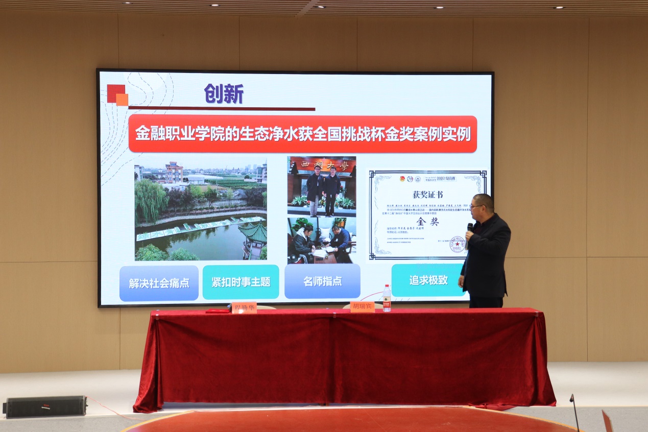 胡瑞宾学长从个人经历、工匠精神内涵、创新实践以及创业实例等方面分享了他投身创新创业的感悟和体会,从学术交流到行业专家再到社团交流,他将创业过程中所学所思所想的每一步都耐心分享给学弟学妹们,并针对同学们的一些疑问与困惑做出了指导答疑。胡学长强调创新的机缘是要用工匠精神专注成为业内行家专家,专注才能创新,创新需要学会多观察、全面学习,还要用跨界思维深耕专业,创新还要学会采用头脑风暴法,先追求量再追求质,最后还要大胆假设小心求证,同学们也要多参加比赛,做到学习和比赛两不误。胡先生还说:“我们不应以自己为职业院校的身份而自卑,因为科学家是一个职业,老师是一个职业,企业家也是一个职业,三百六十五行,只要坚守工匠精神,行行都能出状元。” 胡瑞宾学长也以亲身经历诠释了工匠精神始终是创新创业精神源泉的理念。对于该不该创业,怎么创业,胡学长也提出自己的见解,创业需要专业团队,需要培育核心能力,更需要能做,能说,能写,没有机会,创造机会,抓住机会。胡学长也告诫同学们万一创业失败千万不要去赌博,有很多前车之鉴。
