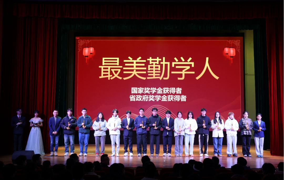 “最美勤学人”是为一年来获得国家和省级奖学金同学设置的奖项,学校学工部部长王汇、创意设计学院副院长季海祺、办公室主任刘博盛为这些获奖同学进行了荣誉颁授。