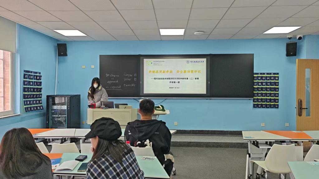 3月4日开学第一天,现代信息技术学院组织各班开展2023/2024学年第(二)学期开学第一课,引导同学们坚定理想信念、锚定奋斗目标,增强校园安全廉洁意识,为新学期蓄力赋能。