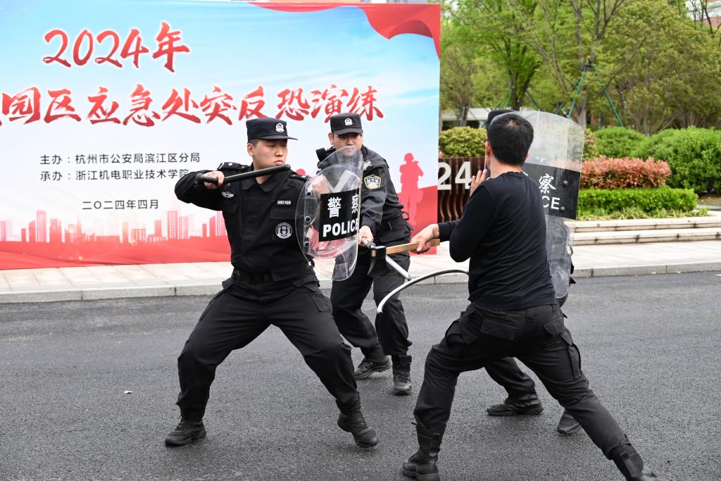 2024年4月2日,浙江机电职业技术学院南大门口“上演”了一起驾车闯校门后持斧砍人的“戏码”。这是一场由杭州市公安局滨江区分局主办,我校承办的紧张而又富有成效的应急处突反恐演练。本次参加演练的有来自浙江机电职业技术学院、浙江警察学院、浙江中医药大学等10支安全保卫队伍。浙江机电职业技术学院党委副书记周增逵、基层基础管理大队教导员陈观忠、巡特警大队二中队中队长方飞鑫、浦沿派出所副所长陈斌、省教育发展中心滨江后勤部副主任陶仕清等领导嘉宾现场观摩。