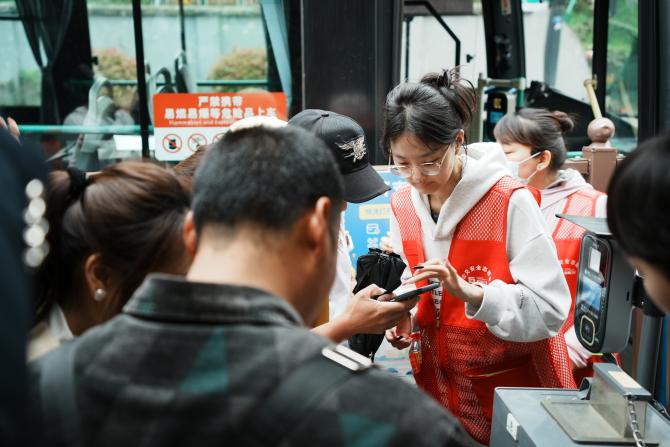 “梨花风起正清明,游子寻春半出城”。正值清明小长假,为更好引导清明期间市民的安全出行,文明出行,浙江机电职业技术学院智慧交通学院党总支与杭州公交集团联合开展“倡导绿色出行,护航文明交通”志愿服务活动,携手共建畅通、和谐、有序的道路交通环境。节假日期间,交通学子放弃休息,由智慧交通学院党总支书记黄柯信、院长倪勇、副院长王循明带队,前往里太祖湾等西湖附近乘客换乘公交站点开展志愿服务,以积极饱满的热情服务好每一位乘客,为城市交通线的畅通做出贡献。