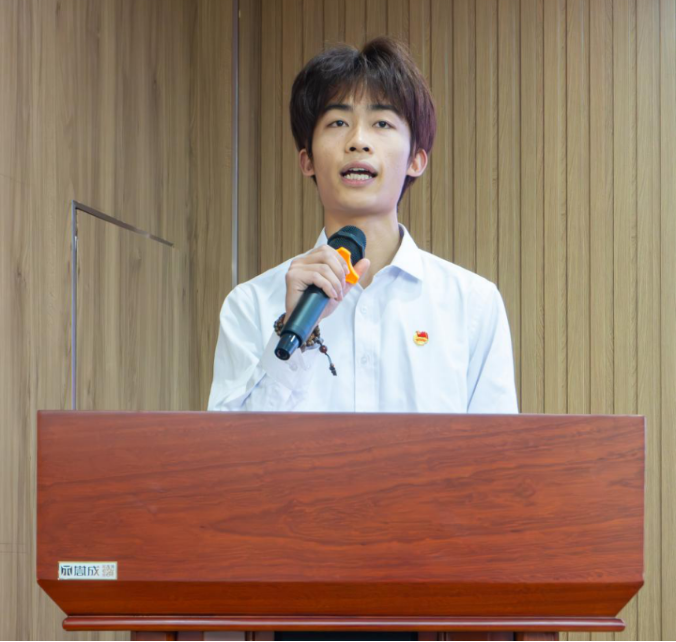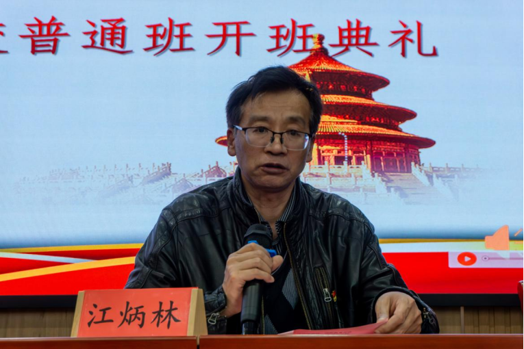 在奏唱国际歌后,江炳林老师介绍了本期业余党校教学安排,林卡老师对本期业余党校的学员条例进行宣读。机电2334班阮律翔同学代表全体业余党校学员在会上发言。他提出,作为一名在校大学生、一名新时代的有志青年,要对自身综合素质的要求更高,他也表明了加入中国共产党的决心,提出要以更加饱满的热情、更加端正的学习态度、更加刻苦的学习精神投入到这次学习当中,以实际行动提高我们的能力担当。