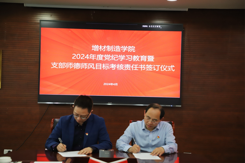 党总支书记陶勇领学了习近平总书记关于党纪学习教育的重要讲话、重要指示精神和关于加强党的纪律建设的重要论述,学习传达了学校党委扩大会议关于开展党纪学习教育的会议精神。主持工作副院长程文锋宣读了学院关于开展党纪学习教育的具体工作方案。会上,还举行了各党支部师德师风目标考核责任书签订仪式、教职工廉洁从业承诺书签订仪式。