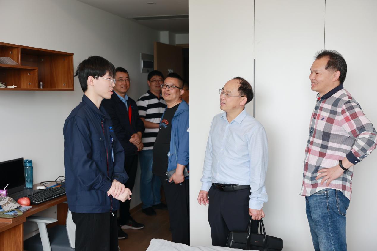 会议开始前,陶勇一行参观了华瑞公司展厅及厂房,并走进员工宿舍,实地查看住宿环境、了解订单班学员的情况。