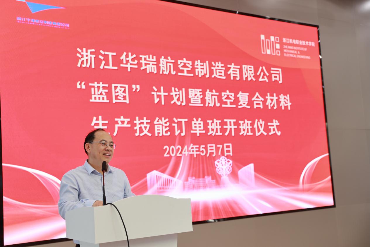 郑佐鹏在欢迎致辞中表示,华瑞公司是浙江省深度参与国家大飞机战略,全力打造航空航天“万亩千亿”新平台的旗舰项目。今年以来,公司全面加强“三支队伍”建设,强化与机电学院校企联动,启动航空复合材料生产制造订单班“蓝图计划”人才项目,不断优化合作机制、深化产教融合,聚力打造高素养劳动者队伍,为型号项目提供强有力的技能人才支撑。