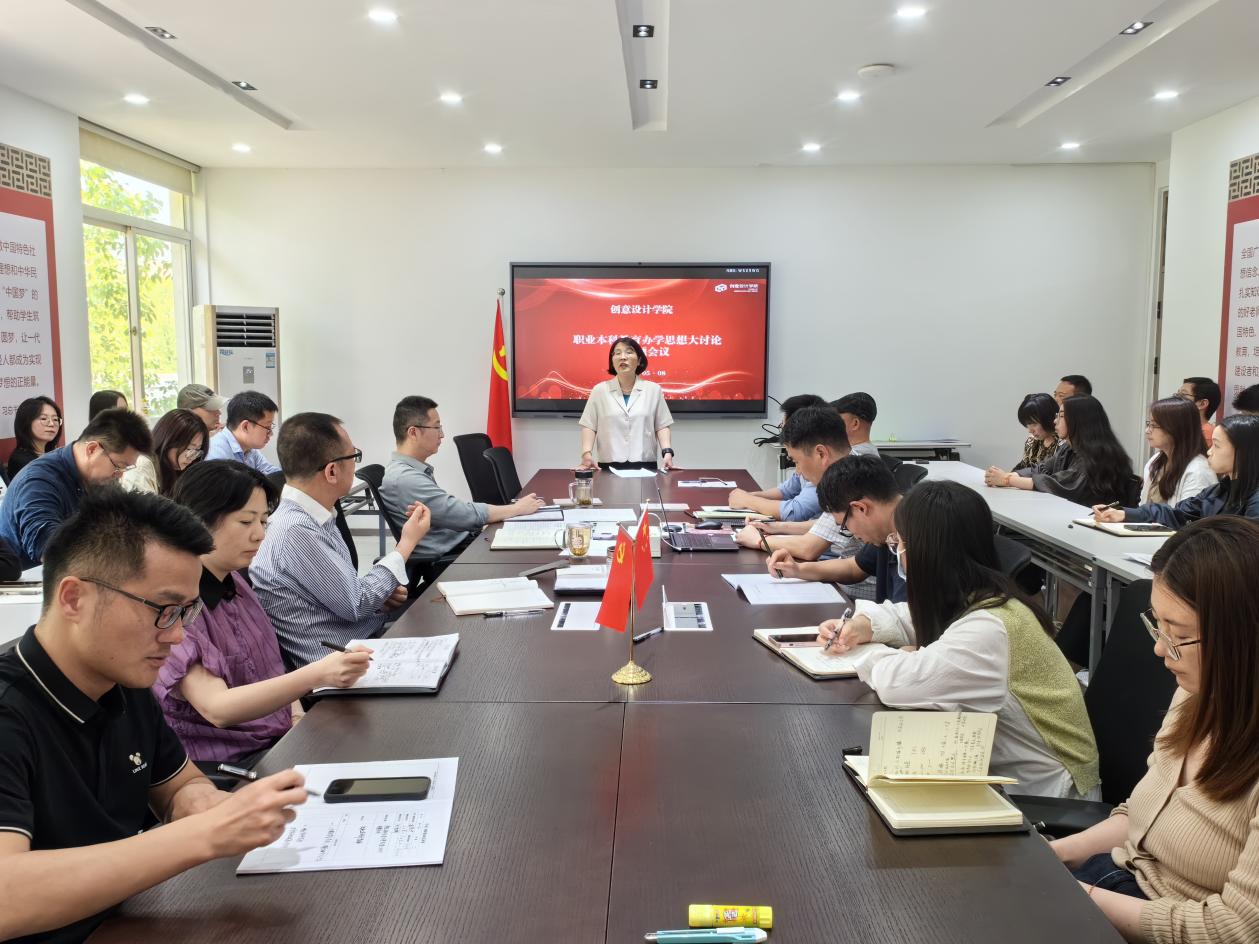 为贯彻落实学校关于开展职业本科教育办学思想大学习、大调研、大讨论活动要求,推动学院教育教学工作的持续创新与发展,创意设计学院于5月8日下午召开了职业本科教育办学思想大讨论工作会议。党委委员、创意设计学院院长邓劲莲、创意设计学院党总支书记符强、党总支副书记史奕、创意设计学院副院长季海祺和全院教职工参加此次会议。