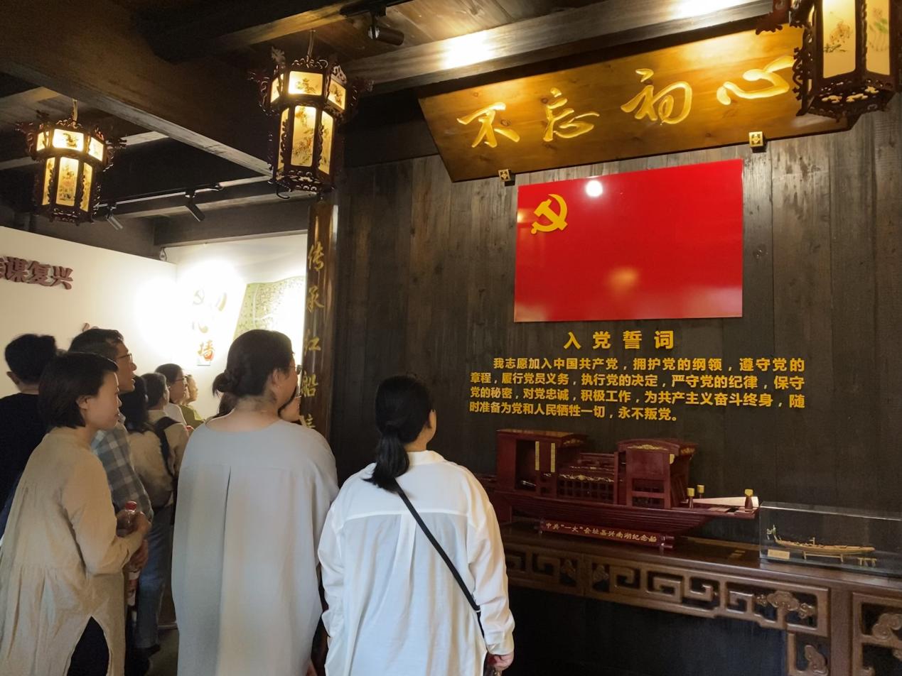 学院全体党员乘坐“清风号”游船,聆听讲解员讲述习近平总书记到西溪湿地考察的场景,沿着总书记的足迹深刻领会“两山”理念下的重要实践。下船后,一行人沿着西溪清风廉洁文化教育专线继续学习。在蒋相公祠学习蒋氏兄弟“性醇厚、喜赈施、存仁心、行好事”的故事,传承“德仁义信”的蒋氏家风;在河渚塔下学习杭公“铁头精神”,坚守实事求是的工作方法;在三深大会堂领会清廉书画摄影展透露的清廉之气,强化廉洁自律意识;在清平山堂感受洪楩静心修身的高洁志趣,弘扬新风正气。