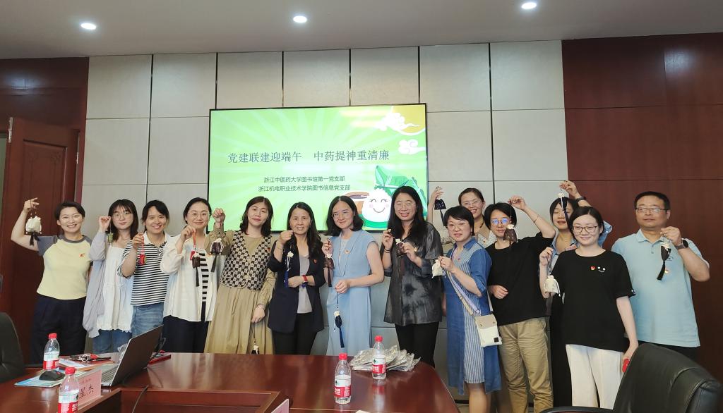 最后,在浙江中医药大学图书馆第一党支部支部书记李露芳的带领下,共建党支部全体党员参观了浙江中医药大学富春校区图书馆,一起参加了“党建联建迎端午,中药提神重清廉”手工香囊制作活动,促进了双方党支部党员的交流。