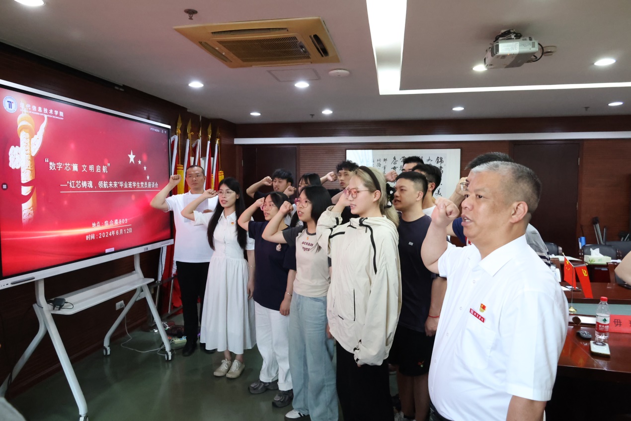 会议在重温入党誓词中拉开帷幕,物联云计算学生党支部书记梁启来为毕业生党员们带来了《正心正行做一名合格共产党员》主题微党课。优秀毕业生党员林方洲分享了自己的成长故事并表态,他表示,一定牢记学院党总支在毕业时刻的教育,在人生道路上勇挑重担,勇克难关,勇斗风险,充满活力,充满后劲,充满希望。