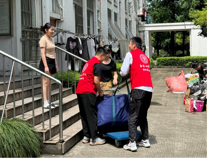 全体学生党员成立志愿者服务队,在立德园设立“红小匠“党员先锋助力岗,帮助毕业生搬运行李。他们充当行李的装卸工,在闷热的天气下,哪怕挥汗如雨,他们也不曾有一丝抱怨,一分懈怠。活动过程中,党员志愿者们以饱满、积极的态度展现了共产党员的精神风貌,彰显了志愿者的奉献精神,充分体现了自动化学院学子无私奉献、乐于助人的精神品格。