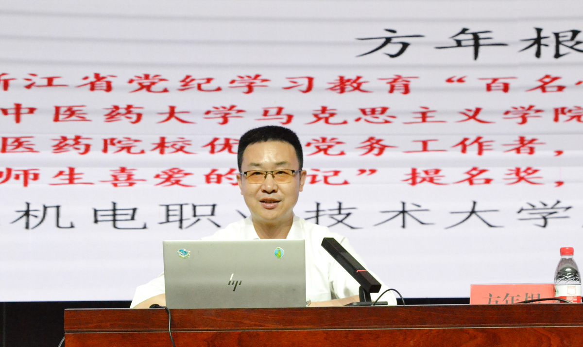 大会特别邀请了浙江省党纪学习教育“百名骨干讲师团”成员、浙江中医药大学马克思主义学院党总支书记方年根教授主讲,智能制造学院党总支成员、马克思主义学院党总支成员、全体教师党员、学生党员、入党积极分子参加学习。大会由党总支书记楼建忠主持。