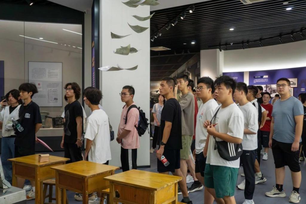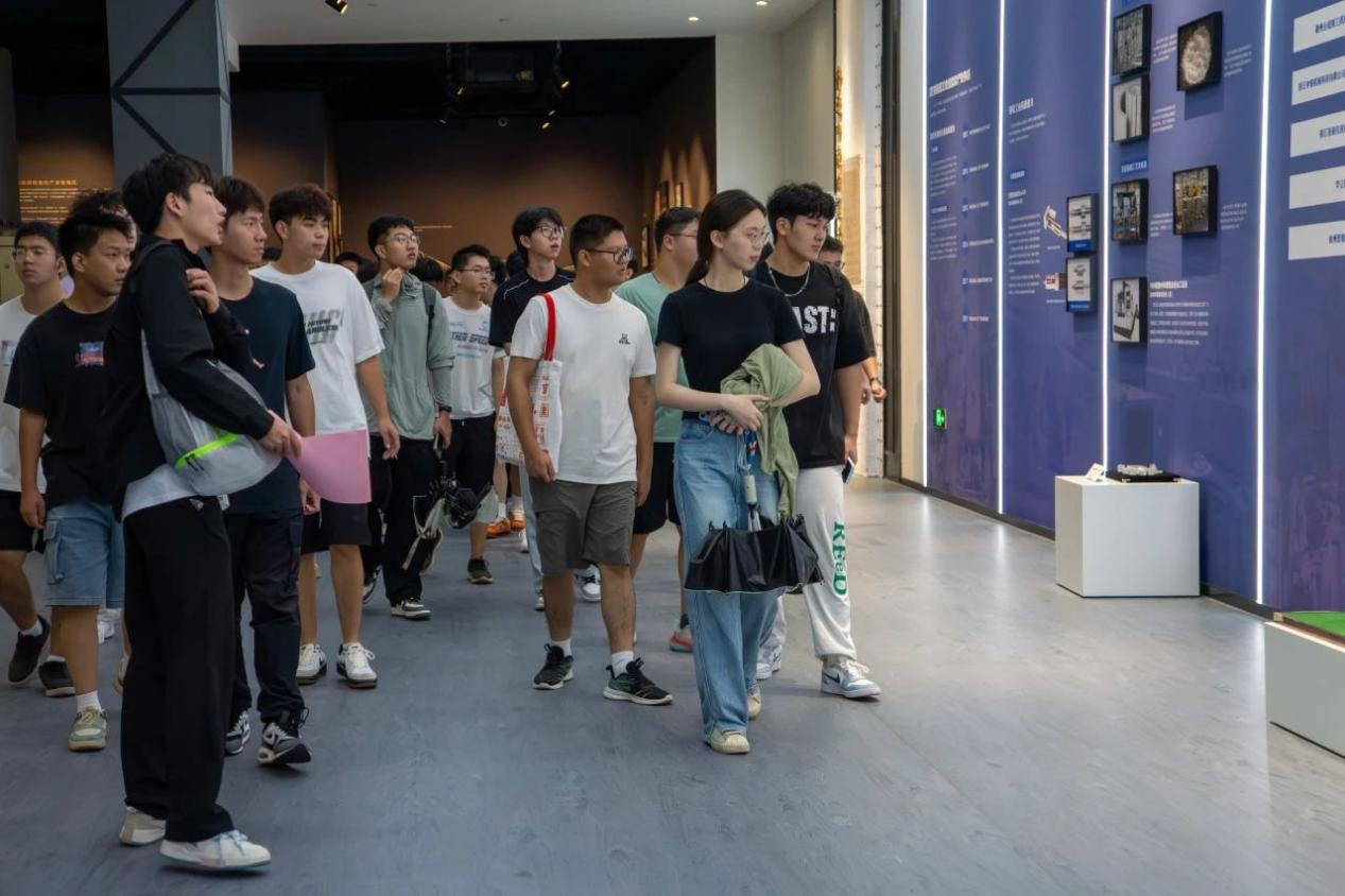 随后,新生们参观了校史馆。校史馆展示了学校在全国职业教育发展各阶段的教学措施、主要事迹和发展变化,生动再现了学校的发展历程及其在中国职业教育史上的贡献。同学们纷纷表示,这次经历让他们深切感受到了学校及机械工业波澜壮阔的发展历程。作为机电学子,大家深知肩上责任重大,誓言要时刻铭记机电校训,将工匠精神内化于心、外化于行,为学校的荣耀与机械工业的辉煌贡献自己的一份力量。