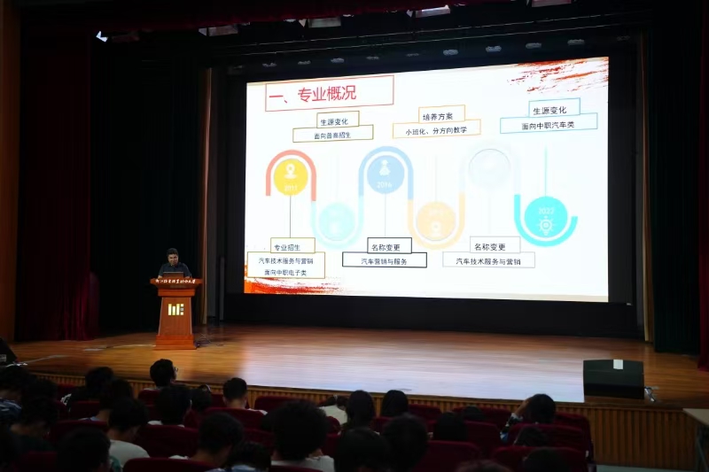 新生大会结束之后,智慧交通学院开展了专业教育大会,教研室主任们轮流为新生做专业教育。城轨专业教研室主任曹昕鸷老师、汽营教研室主任黄会明老师、汽智教研室副主任陈道泉老师分别给大家详细介绍了行业当前的发展以及本专业的发展现状、专业人才的要求、专业的方向教学等方面,勉励同学们认真学习专业知识,成为高素质人才。各位老师声情并茂的讲解,让同学们对自己的专业有了充分的了解,对自己的职业目标有了更清晰的认知。