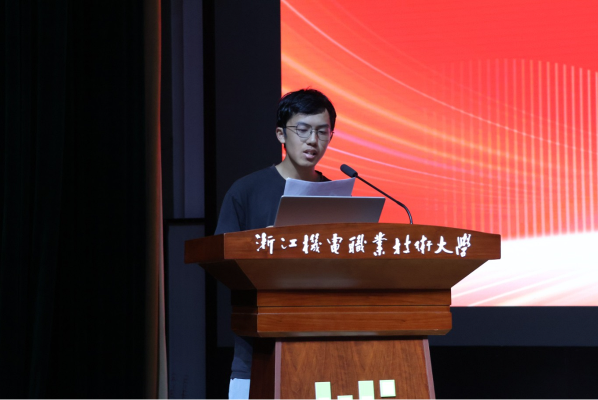 随后,新生班主任代表杨飞帆老师做发言,他讲到,大家作为机电大学的第一批新生,我们升格为本科的第一批学院,对我们学院来说意义非凡。也提到对于大学大家可能会有一些误解,上大学不意味着就轻松了,它是我们进入社会的第一课,同时对老师也不要害怕,有问题多和老师们交流。最后杨老师希望大家带着好奇心和勇气,边学边问,勇往直前!