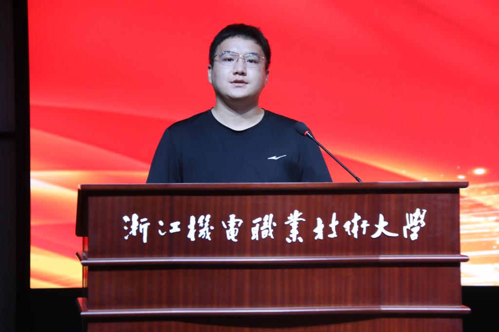 学生标兵代表潘程洋回顾了在企业8周的实习经历和自身的感悟,他表示在这段实习经历中学习到了很多书本上学习不到的知识与技能,今后将更加努力学习,不断提高自身的能力与技艺,力求以更加全面且深厚的专业知识与技能储备,迎接未来的挑战与机遇。