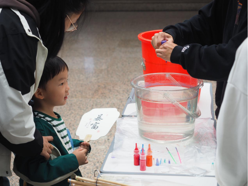 学院为校友子女精心准备了一场亲子艺术趴活动,由校友携其子女共同创作、体验非遗漆扇制作,感受艺术的魅力。现场气氛活跃,在漆扇制作过程中,孩子们通过调漆、试色,以旋转或轻摇等不同方式和幅度DIY出自己心仪的色彩图案,切身感受到传统文化的魅力和色彩的奥秘与绚烂。