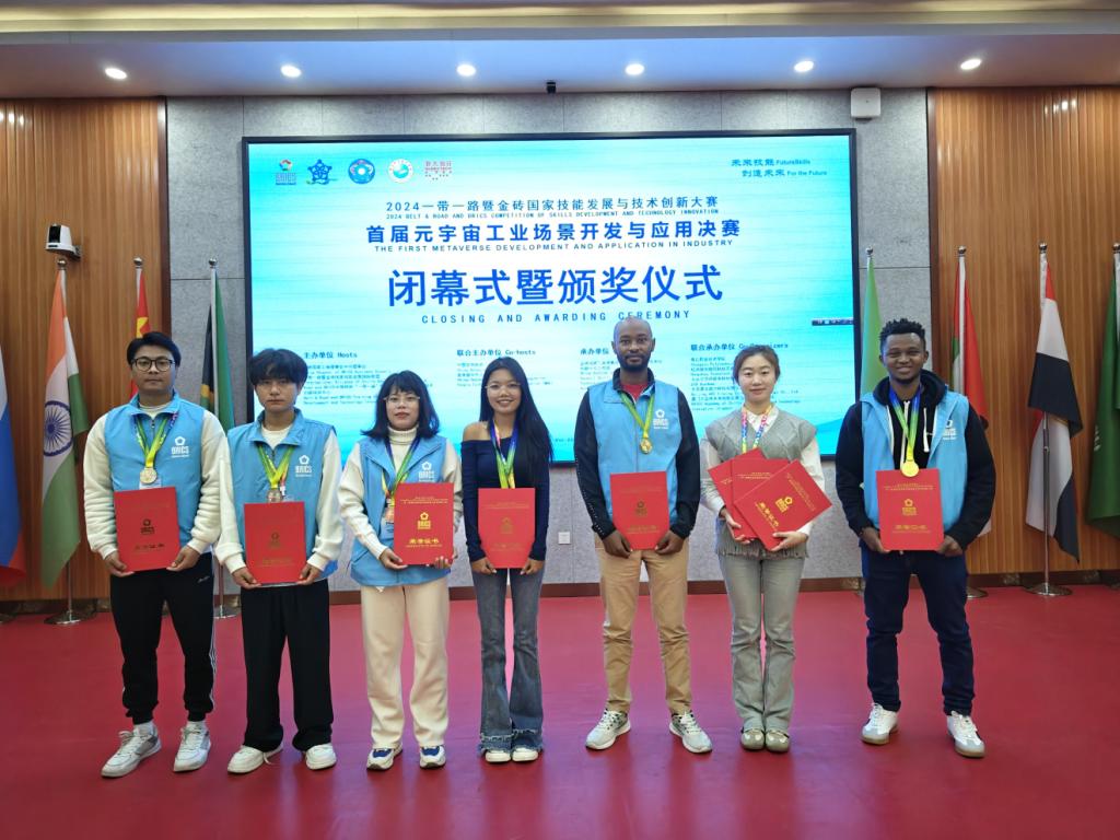 在日前结束的“2024一带一路暨金砖国家技能发展与技术创新大赛之首届元宇宙工业场景开发与应用赛项决赛”中,国际教育学院坦桑尼亚籍留学生Maturo Apollo Godwin(阿波罗)和肯尼亚籍留学生Kinyua David Karobia(大卫),在方案设计、工业逻辑设计与制作、元宇宙功能开发等多项任务中表现优秀,脱颖而出,获得外籍组一等奖(金牌)!