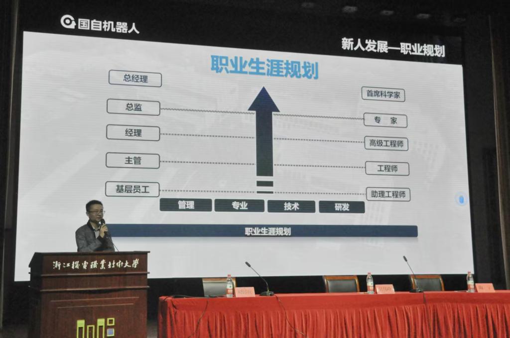 吴伟峰以“智能物流:动达天下,新见未来”为主题,向师生们介绍了浙江国自机器人股份有限公司的概况。作为国内领先的移动机器人及智能物流系统解决方案提供商,浙江国自凭借其在自主导航、智能调度、大数据分析等领域的深厚积累,广泛应用于电商仓储、智能制造、机场物流等多个场景,持续推动物流行业的智能化转型。