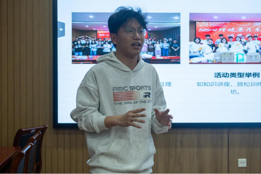 随后,心理拓展部部长朱文轩同学分享了部门在推动学院心理健康教育方面的主要职责与成就,帮助新生们对该部门的工作有了更加清晰的认识。