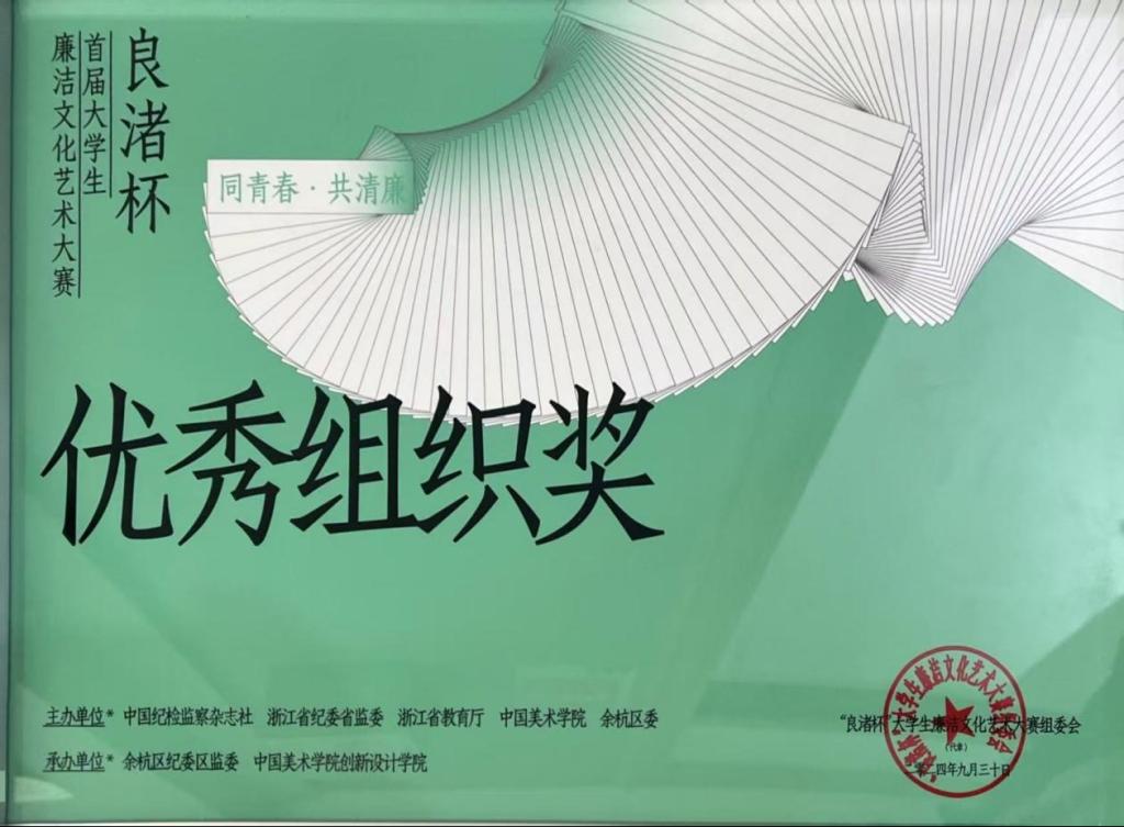 为更好地将新时代廉洁文化建设与大学生思想政治教育相融合,推动廉洁文化在高校落地生根,中国纪检监察杂志社、浙江省纪委监委、浙江省教育厅、中国美术学院、余杭区委共同主办“良渚杯”首届大学生廉洁文化艺术大赛。11月11日大赛颁奖典礼暨优秀作品展开幕式在中国美术学院良渚校区举行,我校获奖师生代表受邀参加典礼。