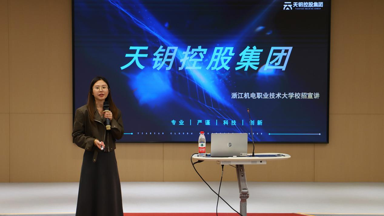 第三场是属于会计的专场招聘会,会计教研室主动对接用人单位,邀请了杭州天钥控股集团有限公司的招聘负责人,现场提供了会计助理、审计助理等多个岗位,从公司宣传视频开始,再从岗位职责与要求、薪资待遇与福利等进行宣讲,同学们认真聆听。