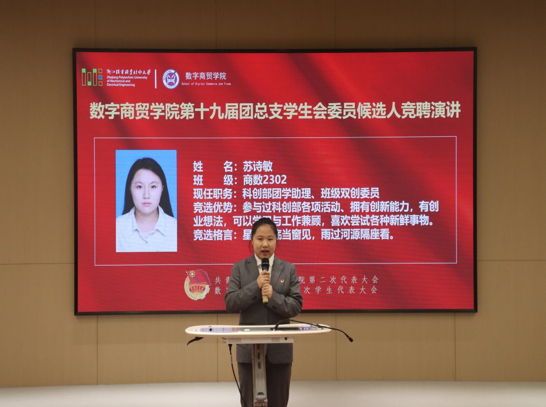 我院团学“双代会”在集体奏唱团歌中圆满落幕。在未来的工作中,学院团总支学生会将继续紧密围绕服务同学的宗旨,以“引领”和“服务”为核心,积极投身学院建设,主动倾听青年心声,凝心聚力、求真务实,为学校争创国内一流、国际知名的高水平职业技术大学、培养高素质技术技能人才贡献数字商贸学院的青春力量。