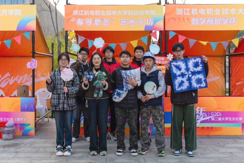 12月6日,“潮青年·一起‘young’”第二届大学生文化季(海宁)在浙江机电职业技术大学海宁校区隆重启动,学院“布可思艺”艺术工坊作为学校“一校一品”艺术设计展之一,以其独特的魅力吸引了众多目光,成为一道亮丽的风景线。摊位上不仅展示了精美的扎染作品,还提供了漆扇制作的互动体验,让师生们亲身体验到了非物质文化遗产的独特韵味与深厚底蕴。
