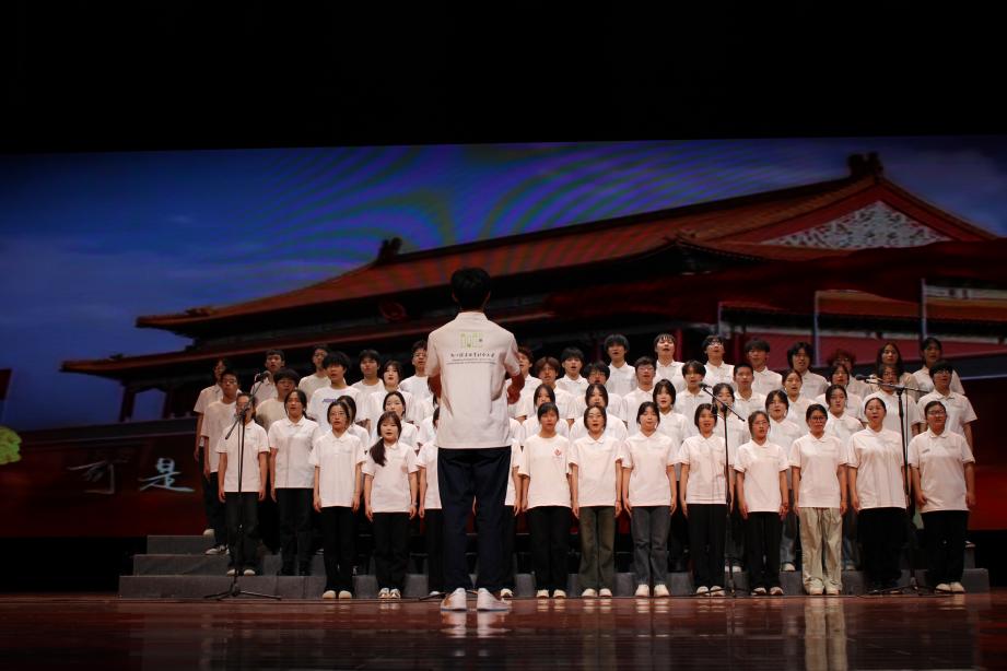 他们身着军装,歌声犹如出征的战鼓目出了古往今来英雄们对家国的忠诚与担当。同学们目光坚定,身姿挺拔,那磅礴的气势仿佛要冲破时空的界限,与历史上的爱国志士并肩作战。
